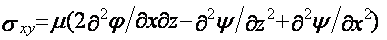 Используя эти выражения и закон Гука для изотропного тела, можно записать отличные от нуля компоненты тензора напряжений: